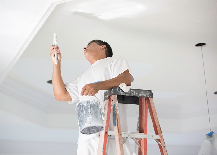 The final step is to paint the ceiling after you have prepared it for the job. You need to use a brush to cut corners and then paint areas that are close to the wall. It is also best to start from the walls (where you have added your painter’s tape) and work your way to the middle.